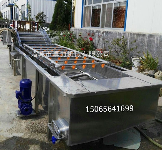 菌类清洗机用途采用食品级SUS304不锈钢加工,输送部分采用食品级SUS304不锈钢螺旋网带,运行平稳、速度可调,网带道轨加耐磨垫轨,增加链条使用寿命,减小链条磨擦的同时减轻了传动电机负荷,使用寿命长;设备中设有气泡发生装置以及高压水循环冲淋装置,使蔬菜呈上下左右翻滚状态,把物料里面的泥沙、毛发等清洗干净,出口处配有喷淋装置经过二次冲洗,在清洗槽的上方有溢水口,漂浮物可以从溢流槽溢出,下方留有排污口,沉淀物可从排污口排出,达到彻底清洗的目的。